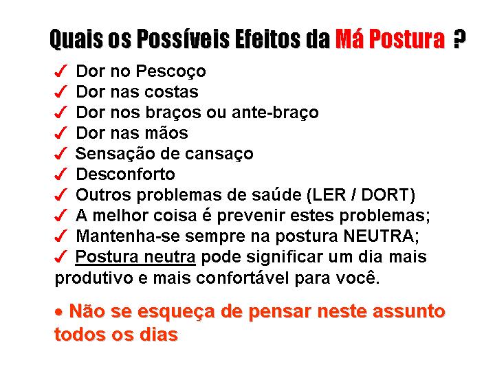 O mobiliário de escritório pode ser seu amigo ou inimigo, por isso invista algum tempo na sua escolha, e decida corretamente o melhor para sua saúde. Os grandes problemas são os riscos associados ao stress e as pressões do trabalho moderno e as doenças relacionadas com as articulações em decorrência de trabalho repetitivo e sem planejamento que não leva em conta o conforto de execução na atividade.
